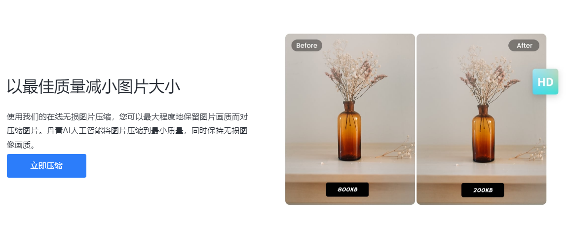 值得一提的是,丹青AI網(wǎng)站提供了強(qiáng)大的在線照片壓縮工具,無(wú)需下載任何軟件,只需輕輕一點(diǎn),就能輕松實(shí)現(xiàn)照片壓縮。不僅操作簡(jiǎn)單,壓縮速度也非常快,讓您的照片壓縮體驗(yàn)更加流暢。