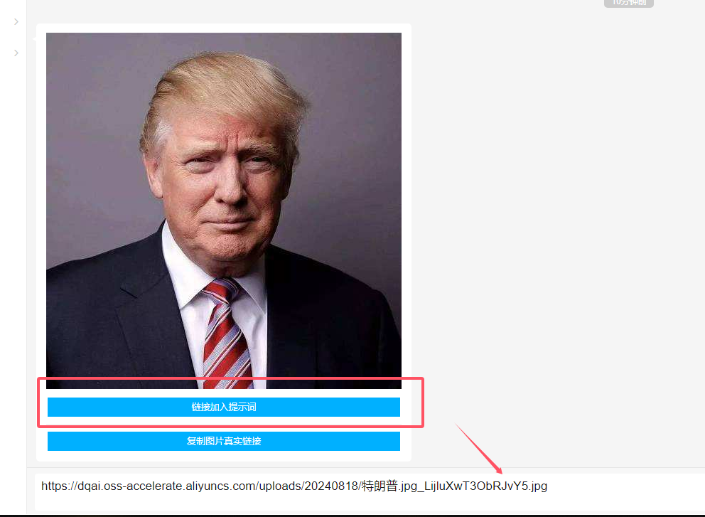 第三步、提交成功原圖后我們點(diǎn)擊“鏈接加入提示詞”,那么隨后關(guān)鍵詞輸入框就會(huì)加入了圖片鏈接,此時(shí)也就是可以直接在輸入框內(nèi)加入需要針對(duì)此ai圖生圖所需要的關(guān)鍵詞,那么ai圖生圖操作步驟就這么簡單。