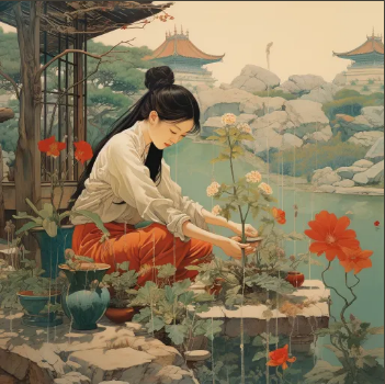 Lin Daiyu, A Dream of Red Mansions, picking flowers in the garden. (