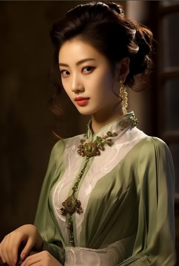 中國玉嬌,中國辣妹,中國頂級模特,淡綠色和深琥珀風(fēng)格,場景緊湊,深白色和深米色--ar76:113)