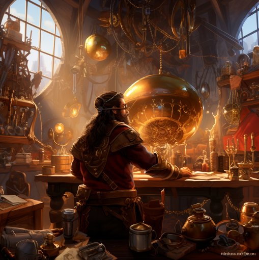 **Prompt:**A workshop filled with steampunk gadgets, airship blueprints, and mechanical contraptions. The explorer is preparing for their next adventure amidst a room filled with brass and gears.