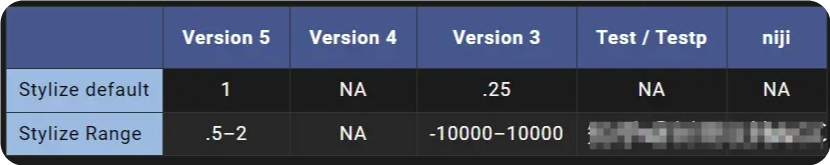 測試模型僅支持--stylize1250–5000 之間的值。