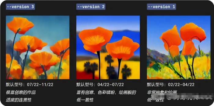 --seed使用模型版本1、2、3、test和的相同值testp將生成具有相似構(gòu)圖、顏色和細(xì)節(jié)的圖像。