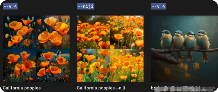 提示示例:/imagine prompt vibrant California poppies --niji