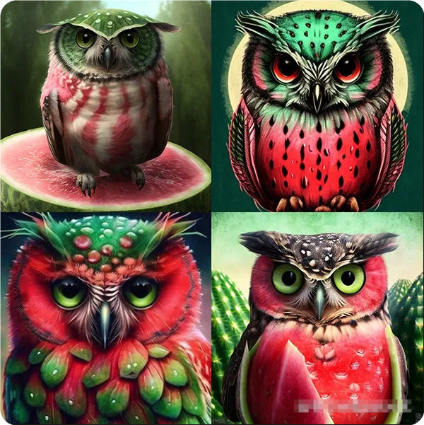 提示示例:imagine/ prompt watermelon owl hybrid --c 100