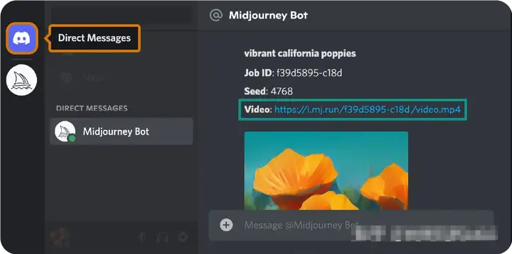 4 Midjourney 機(jī)器人會將視頻鏈接發(fā)送到您的直接消息。