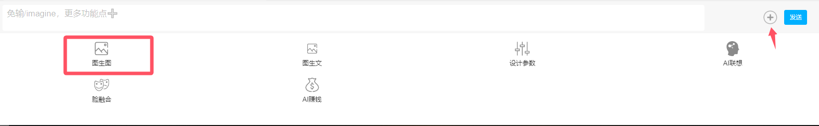 如果你是需要智能ai圖生圖的話則點擊發(fā)送按鈕旁邊的“+”號加載更多功能