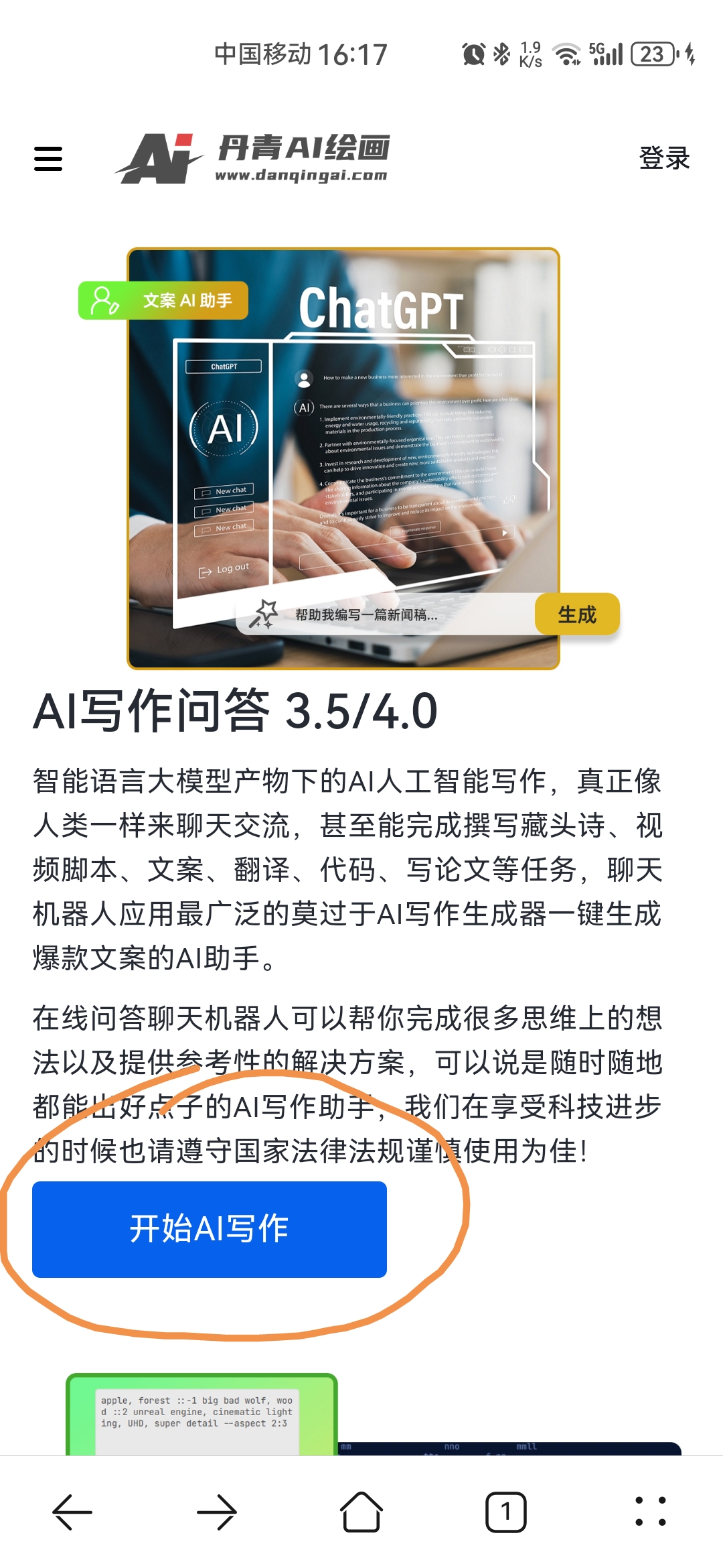 第一步我們先在丹青AI官網(wǎng)上找到AI寫作欄目,然后選擇GPT版本,這里我們以最新4.0為例